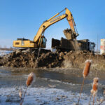 Озеро в микрорайоне «Аэропорт» меняет свой рельеф. С начала января здесь идёт масштабная дноуглубительная кампания. Работа над ошибками Тяжелые экскаваторы…