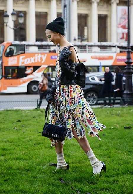 «Однажды нас назвали «Черными воронами» — нас, толпу людей собравшуюся возле заброшенного и полуразвалившегося здания в Даунтауне, одинаково одетых с головы до ног в Comme des Garçons и Yohji Yamamoto. Сегодня, люди за пределами модных показов больше похожи на павлинов нежели на ворон. Они позируют и «начищают перышки» в своих перегруженных узорами платьях, их паучьи ноги балансируют в туфлях на платформах до отказа напичканных всякой всячиной или обтянуты ботфортами на высоченном каблуке под скульптурным пальто украшенным искусственными цветами. Скорее всего в ту же минуту начнется волнение масс когда группа японских девушек обнаружит своего кумира на этом параде: итальянскую прищепку для белья Анну Делло Руссо. Высокая, худая, со скульптурным загорелым телом, дизайнер и фешн-редактор — ходячая демонстрация модных способностей: чем шире пояс, тем короче и пышнее юбка, чем эксцентричнее туфли, тем лучше. Сегодня суета перед показом не менее важна, чем само действо которое проходит за закрытыми дверями. Все так же трудно попасть внутрь, но разница в том, что теперь весь спектакль разыгрывается за пределами шоу. Вы с большим трудом сможете подняться по ступеням Линкольн Центра в Нью-Йорке, или пройти по дорожке сада Тюильри в Париже, из-за несметного количества фотографов-любителей снимающих всех этих позёров. Ах, слава! Или, как это было бы правильнее сказать в мире моды — звездный цирк, состоящий из людей, которые известны потому, что… известны. Пережив эпоху панка и тех андеграундных клубов в Лондонском Ист Энде, где индивидуальность и необычность придуманных нарядов была захватывающей, я не могу избавиться от ощущения, что все было по другому — когда крутые ребята любили одеваться друг для друга, или просто для себя. Существует большая разница между стильными и show-off и это является дилеммой сегодняшнего дня. Если мода для всех, то мода ли это? Ответ выходит далеко за рамки коллекций и имеет отношение к скорости быстрой моды. Нет больше такого промежутка времени когда маленькая группа понимающих моду людей улавливает тренди когда это уже носится повсеместно. Придерживаясь освященного веками правила, что журналисты не принимают подарки ( читай: взятки), я поражаюсь тому, как открыто блогеры сообщают, что дал им дизайнер, и кто дал. Есть что-то смехотворное в стремлении к величию некоторых онлайн арбитров, тех кто идет вразрез с мантрой журналиста моды, которой меня учили в юности “It isn’t good because you like it; you like it because it’s good.” (Эта вещь хороша не потому, что нравится вам. Она нравится вам потому, что хороша). Маловероятно что эти слова будут популярны среди фешн-блоггеров. Мода, в определенной степени, стала охлократией (вырожденная форма демократии, основанная на меняющихся прихотях толпы) — или, по крайней мере, местом выживания наиболее популярных особей в рукопашном бою многочисленной толпы страждущих. У «Project Runway», телевизионного шоу, в котором участников выбирали по базовым знаниям в области моды, появились аналоги по всему миру. Все это стало походить на стиль программы «American Idol» в которой публика при помощи голосования выбирает победителя. Зачем кому-то нужно учиться в Лондонском Сент Мартинсе или Нью-Йоркском Технологическом Институте Моды, когда самодельный наряд дилетанта может набрать на ютубе миллионы лайков? Играя в короля Кан