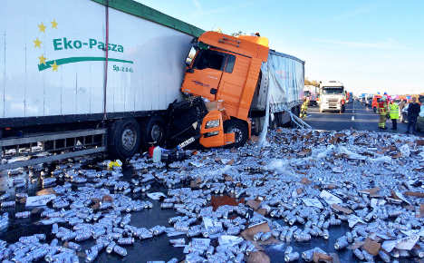 Огромное количество банок пива временно заблокировали шоссе в северной части Германии, неподалеку от Ганновера. Причиной инцидента стало столкновение двух грузовиков, один из которых и перевозил алкогольный напиток, сообщает The Local.