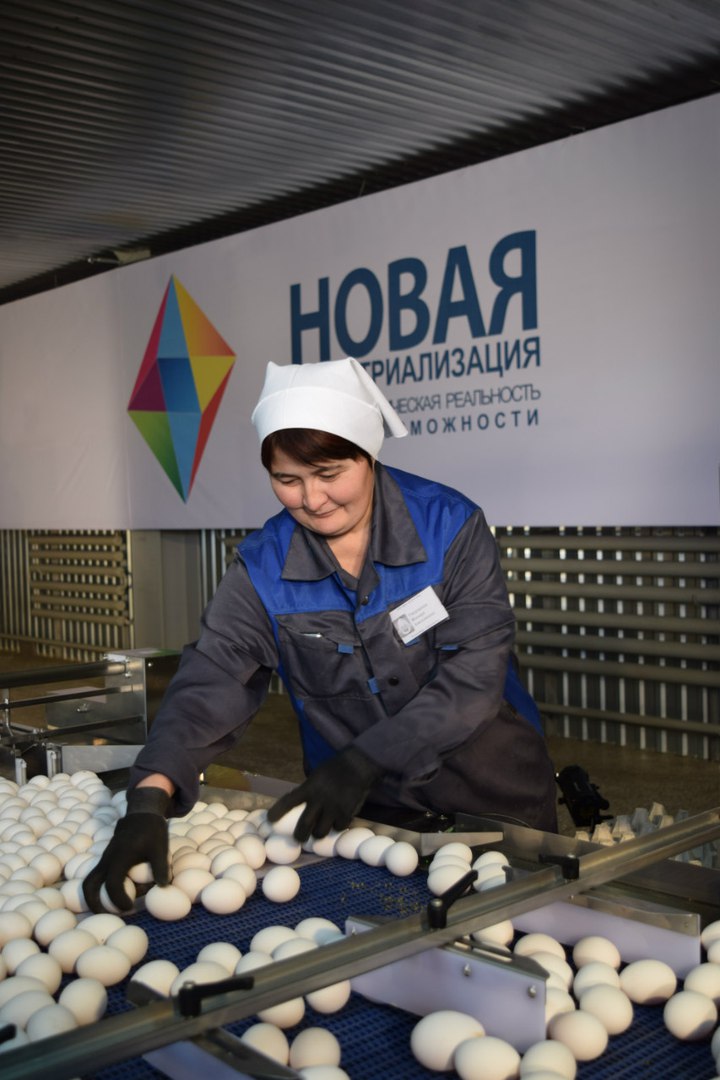 «Мы завершили модернизацию, увеличили производство яиц в 1,5 раза. Внедрение современного высокотехнологичного оборудования позволит в 3 раза сократить время на сборку и сортировку яиц, довести производство до 250 млн штук в год, при этом в 3 раза увеличивая производительность труда. Мы поставляем продукцию во все регионы Казахстана, 15% продукции отправляем на экспорт в Российскую Федерацию, а за счет проведенной модернизации мы планируем удвоить этот показатель», — сообщил главе государства Кайрат Маишев.