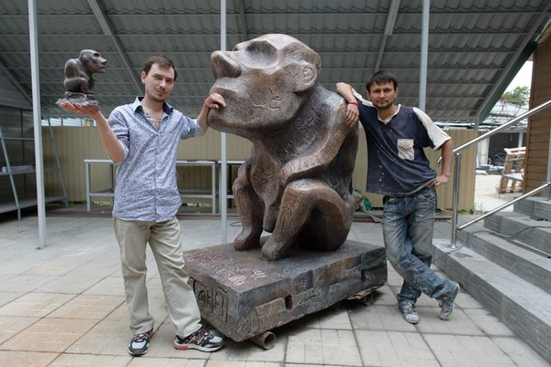 — Вначале мы собирали информацию об этой фигуре, делали наброски, лепили маленькие скульптуры, строили каркасы для формы из глины. Наконец, перешли к гипсу, а потом к бетону. Именно из этого материала сделан наш мыслитель. Его вес около 3 тонн, а высота вместе с небольшим плинтом – 180 см, — рассказал Егор Кислицин.