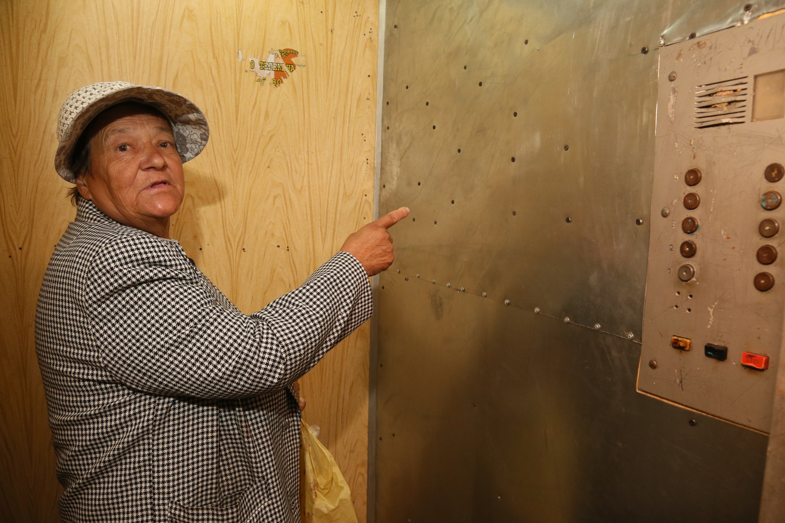 — Вот здесь это было написано, — показывает пенсионерка Людмила Якимова на стенку лифта. — Убрали, металлом зашили. Я когда узнала про взрыв, испугалась. Ушла из дома к родственникам. Так что в день эвакуации меня здесь не было.