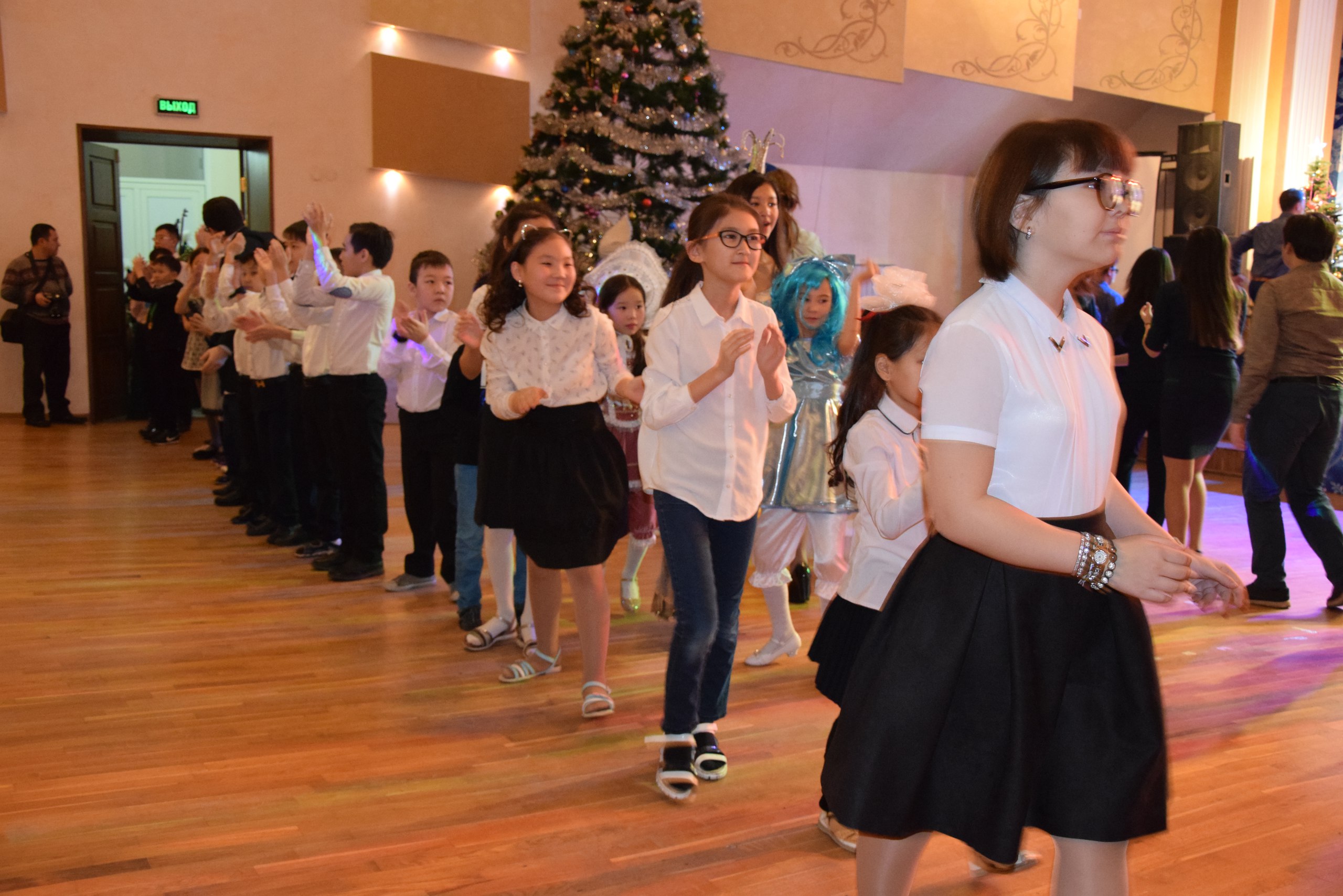Сегодня традиционная елка акима города проходит в два этапа. С самого утра поздравления принимали дети с 1 по 5 классы, а после обеда в новогоднем шоу поучаствуют старшеклассники. С некоторыми ребятами на празднование пришли их родители. Они помогали наряжаться своим Снежинкам, Рыцарям и Красным шапочкам.
