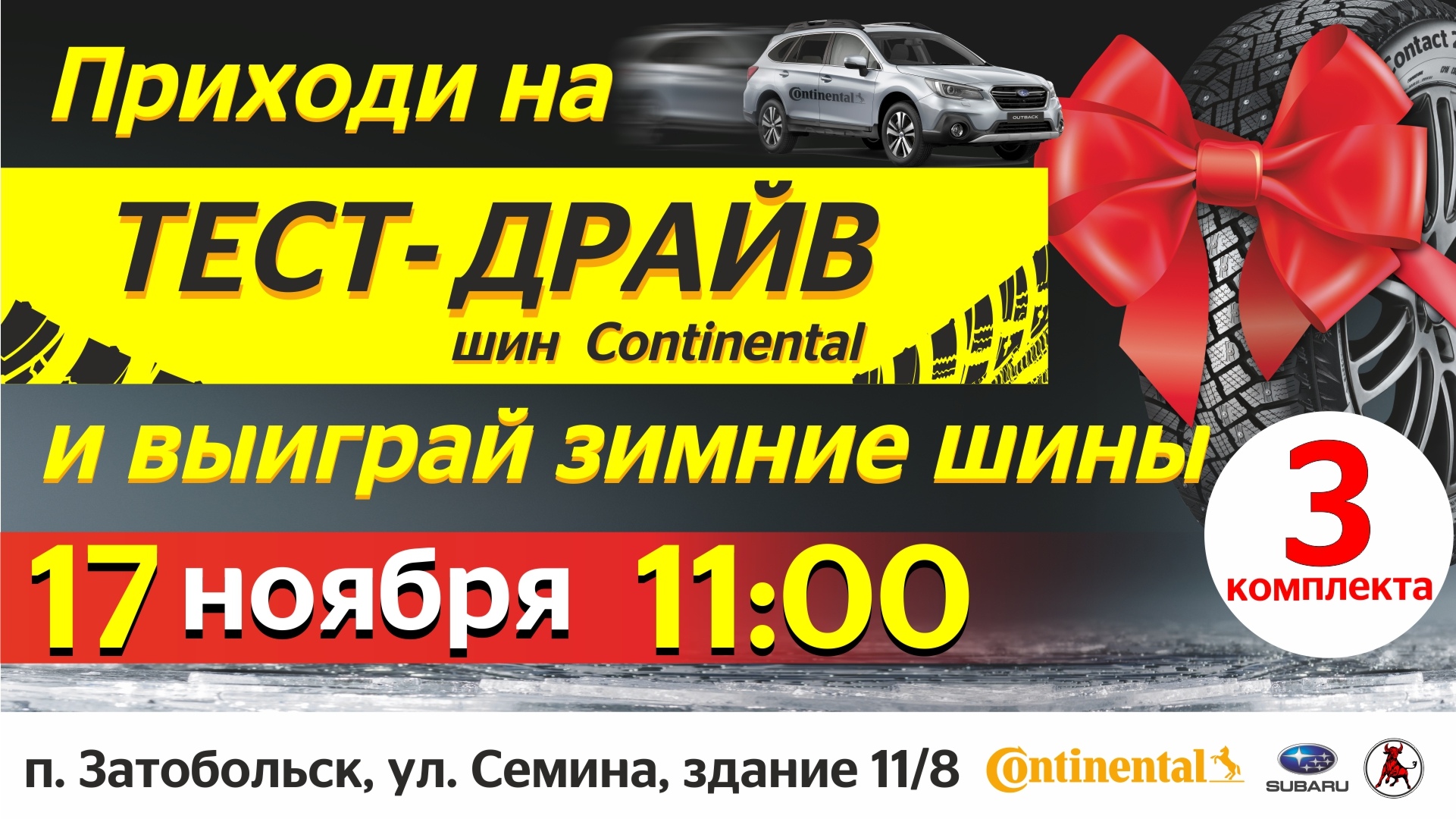 17 ноября для жителей и гостей Костаная на полигоне шинного центра «Костанайшинсервис» состоится тест-драйв зимних шин от немецкого производителя Continental на автомобилях Subaru – «ЗИМА VS CONTINENTAL&SUBARU: КТО ПОБЕДИТ?». Желающие смогут не только лично проверить качество автомобильных шин, но и принять участие в розыгрыше 3-х комплектов зимней резины и более 100 ценных призов от Continental.