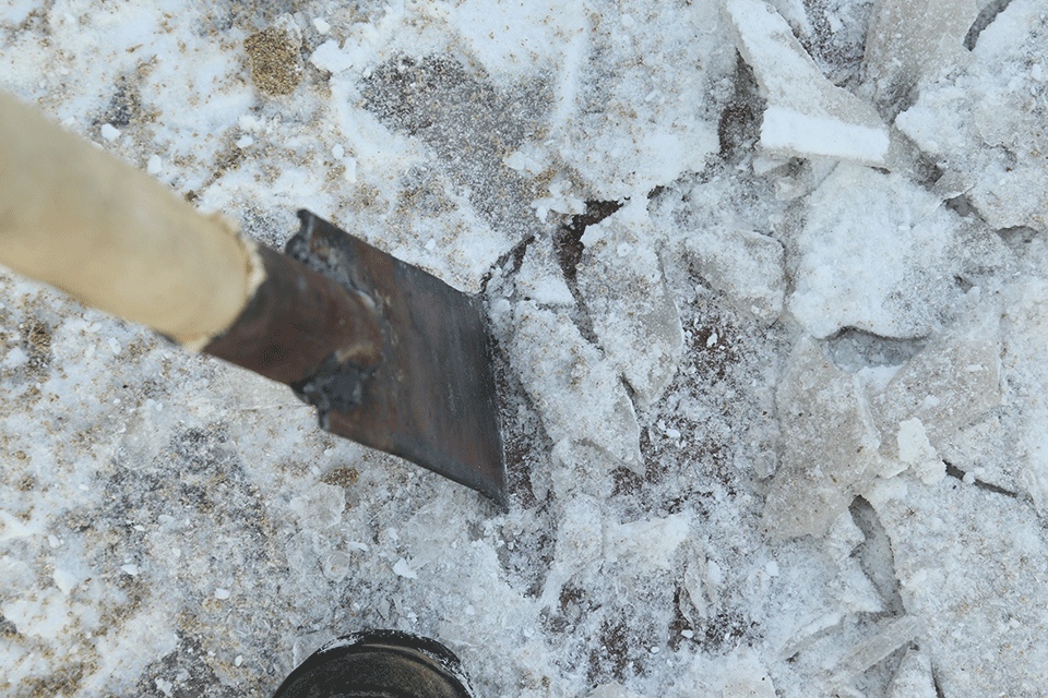Четверг. Температура воздуха в Костанае минус 22 градуса, небольшой ветер. По меркам нашей северной зоны мороз средненький, однако ощутимый. Подъезжаем к магазину, который в народе называют «Кривым». Там уже вовсю трудятся люди в оранжевых жилетах. Это дорожные рабочие ТОО «АБЗ-плюс». 76 человек работают группами. Я – семьдесят седьмая. Наша общая задача – ликвидировать лед на тротуарах.