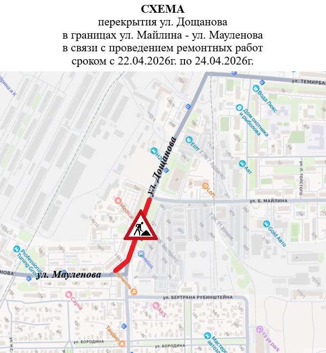 На два дня перекроют одну из улиц в КостанаеАвтор: Редактор сайта | Коммунальная сфера21.04.2026 в 17:00 21.04.202621.04.2026 от Редактор сайта Проезд по ул. Дощанова ограничат с 22 по 24 апреля в пределах ул. Майлина и Мауленова. Сейчас на этом участке снимают ремонтируют дорогу и устанавливают новые бордюры. Мне нравится - Похожие новостиОзвучена дата завершения отопительного сезона в Костанае20.04.2026 18:00В акимате Костаная рассказали, какие дороги отремонтируют в этом году20.04.2026 13:44Новый 18-квартирный дом ввели в эксплуатацию в Узункольском районе16.04.2026 15:00Дело компании «Тазалык-2012» вновь рассматривают в суде в Костанае16.04.2026 11:02Железнодорожный переезд по ул. Станционной закроют на время в Костанае15.04.2026 09:18Шестиметровая домбра и музыка встретят пассажиров на вокзале Аркалыка12.04.2026 17:30