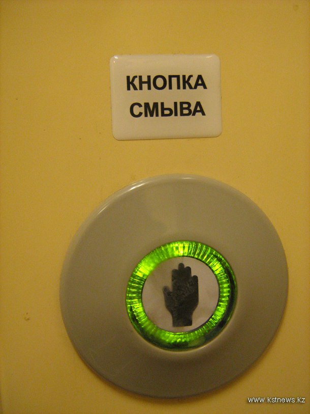 За весь путь я ни разу не слышал неприятных запахов в туалете. Смыв в унитаз производится нажатием электронной кнопки. После этого вода сначала собирается возле маленького отверстия, а затем с чмокающим звуком (вакуум) проваливается вниз. Становиться ногами на унитаз нельзя, однако и бумажных накладок для ободка я в пути не видел. Шкаф с указателем этих накладок в туалете есть, а самих накладок – нет.