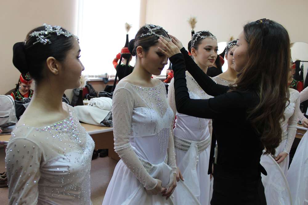 Сфотографироваться с девушками из этого коллектива в костанайском закулисье пытались успеть многие. И неудивительно: их необычные наряды, когда рукава заменили огромными крыльями, выглядели очень эффектно. И это еще они не вышли на сцену! Между тем «лебедей» к выходу пыталась настроить и подготовить молодой хореограф Алияна Искакова, которая и «КН» успела рассказала подробности: «Наши девушки к выступлению в Костанае подготовили классический танец «Лебеди», очень непростой. Сложность не только в костюмах, которые особенны в использовании, но и в точечных движениях, которые создают иллюзию полета птиц или того, как они плывут по воде. Тонкая работа не только рук, но и всего тела. Уверена, что девочкам это дает возможность почувствовать свое женское начало, как представительницам во всех смыслах прекрасного пола».
