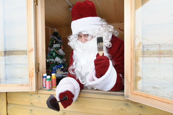 Дата открытия теперь зависит от того, как скоро ляжет снег. Уже начали было строить снежные фигуры, но они растаяли под дождем. Зато домик почти готов. Есть елка, волшебный телефон, письма, и даже самовар на камине – в нем, кстати, будет не чай, а горячий шоколад. И Дед Мороз, конечно! Резиденцию ребята обустраивают сами. Так что Деду Морозу приходится и мастерок, и кисти в руки брать.