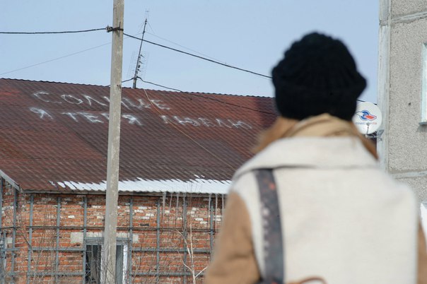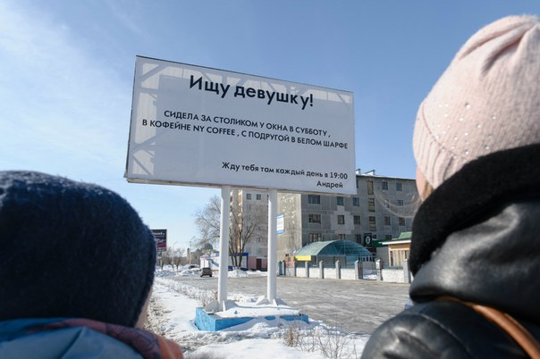 Напротив остановки «Бассейная», Костанай. Он написал для неё – явно живущей в 9-этажке за остановкой. А любуются все.