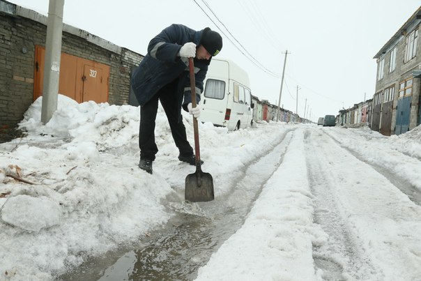 Отводят воду мужики в гаражных кооперативах, бурно обсуждая городские дороги. Многие участки за зиму дошли до такого состояния, что трещат стойки автомобилей. Складывается аварийная обстановка из-за бесконечных маневров водителей, то объезжающих ямы, то ухающих в скрытые водой.