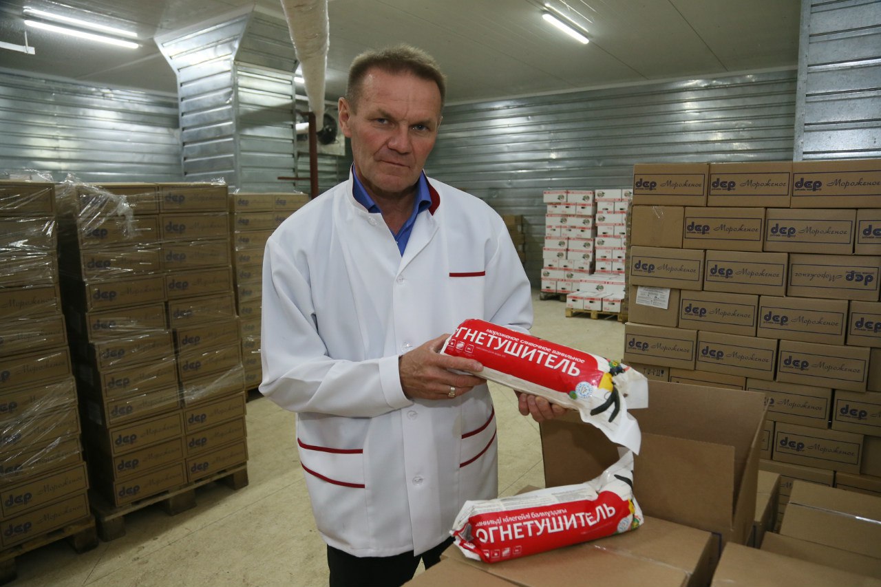 Мороженое в Костанайской области производят уже около 15 лет. Компания «ДЕП» — единственный производитель этого лакомства в нашем регионе. И для того, чтобы конкурировать на рынке с завозным продуктом, фирма все эти годы расширяла ассортимент. Сегодня это 32 разновидности мороженого: эскимо и стаканчики, ведра и «огнетушители». Кстати, про последнюю разновидность услышала впервые. Как оказалось, это упаковка такая — килограмм сливочного мороженого в пленке. Его не ложкой кладут, а ножом режут. Как говорится — вариант для большой компании. На вопрос: «почему огнетушитель?» нам пояснили: в летную жару это мороженое отлично охлаждает. «Это целый килограмм, а не стаканчик, а значит, человек сможет съесть больше и охладиться лучше», — шутят работники мороженого цеха.