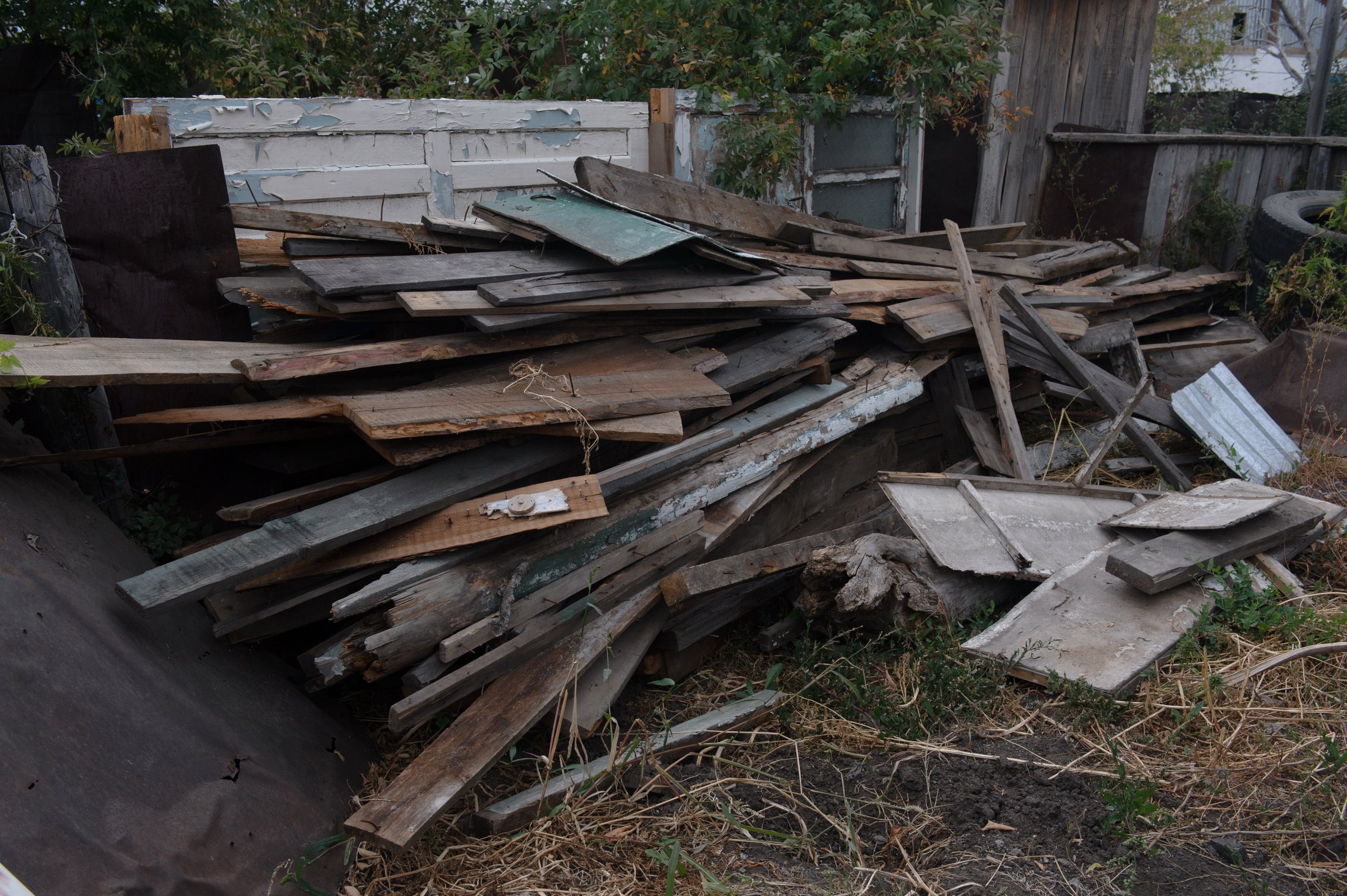 Двор небольшой, чувствуется, что хозяин не лентяй: есть небольшой огород, растут овощи. Картину портит груда строительного мусора: битый шифер, доски, явно бывшие в употреблении. Такое обычно остается после ремонта. Но тут наоборот – это все для ремонта. Привезли представители акимата города Костаная в ответ на многолетние хождения Фахрисламова по инстанциям.