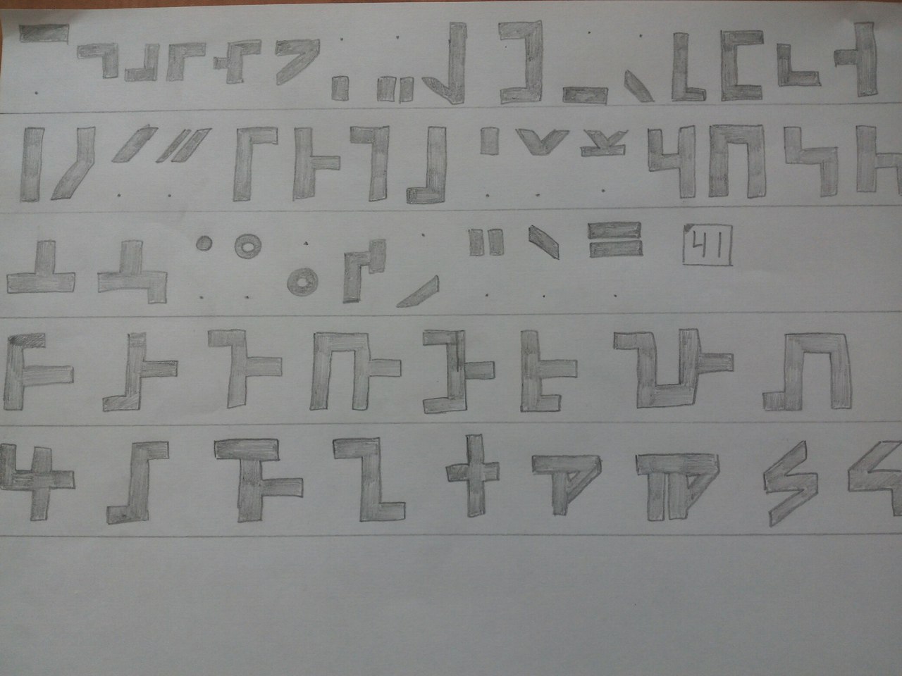 – Я учился в Китае, в университете Сиань Боай Годья Сёосяо. Во время изучения языка углубился в эту тему. Начал интересоваться другими языковыми системами. А потом уже здесь в парке встретил глухонемую девушку. Познакомился с таким понятием, как жестовый язык. И вот всё, что узнал, переложил в алфавит. Уже было много редакций – я его упрощаю и упрощаю. Вы знаете, что финикийская письменность стала основой почти всех мировых систем? Ее переняли греки, потом римляне, потом латинские страны и так далее. Буква «О», кстати, осталась неизменной с тех древних времен. Только у финикийцев она была согласной. У них вообще не было гласных. Так вот, финикийцы стремились выразить букву тремя черточками. Эта простота и помогла письменности завоевать мир.