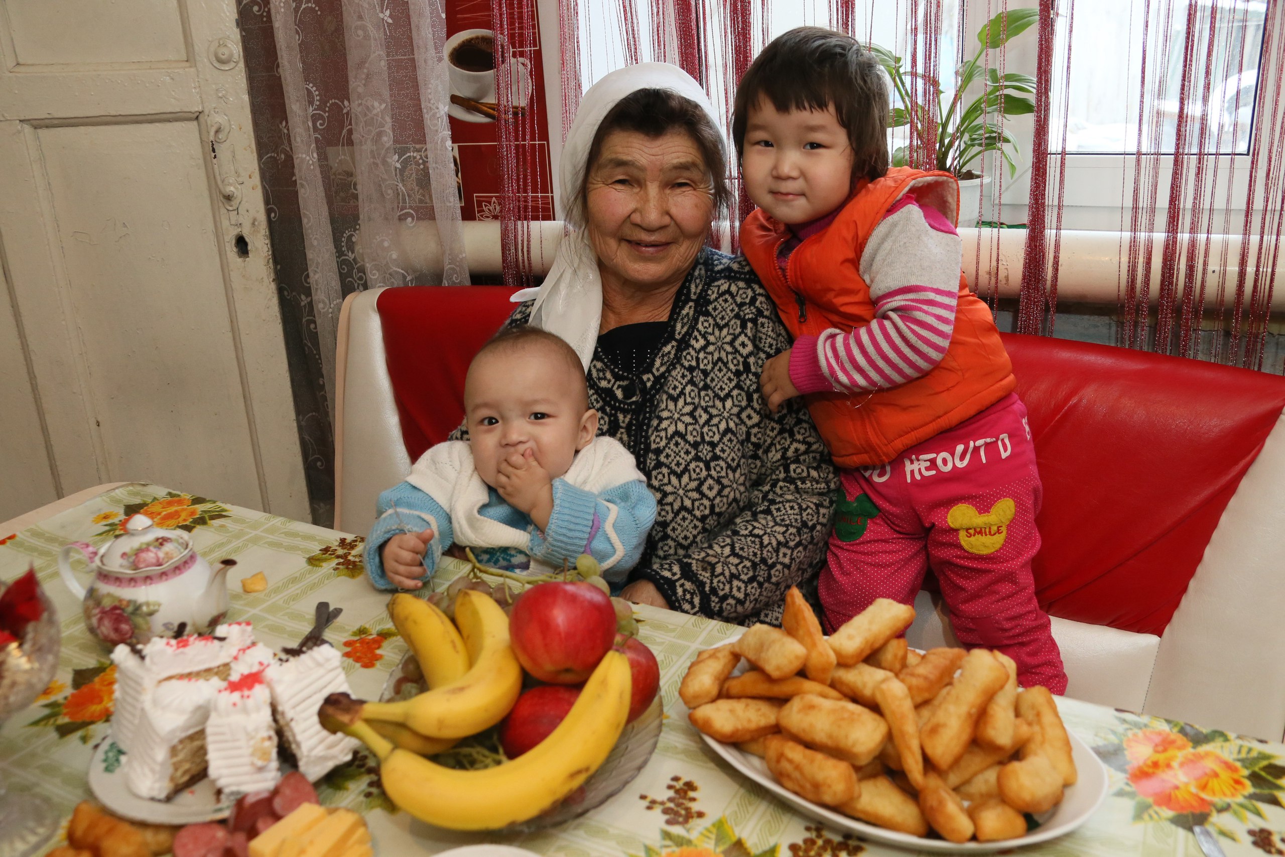 Она прижимает к себе правнука Ерболана, возле прабабушки крутится правнучка Анеля. Шустрая и любопытная девочка так и норовит потрогать мой диктофон. Это дети старшей внучки Айданы. Она часто приезжает к бабушке из Рудного. Мама ее работала, часто болела, и Айдана часто жила у деда с бабушкой