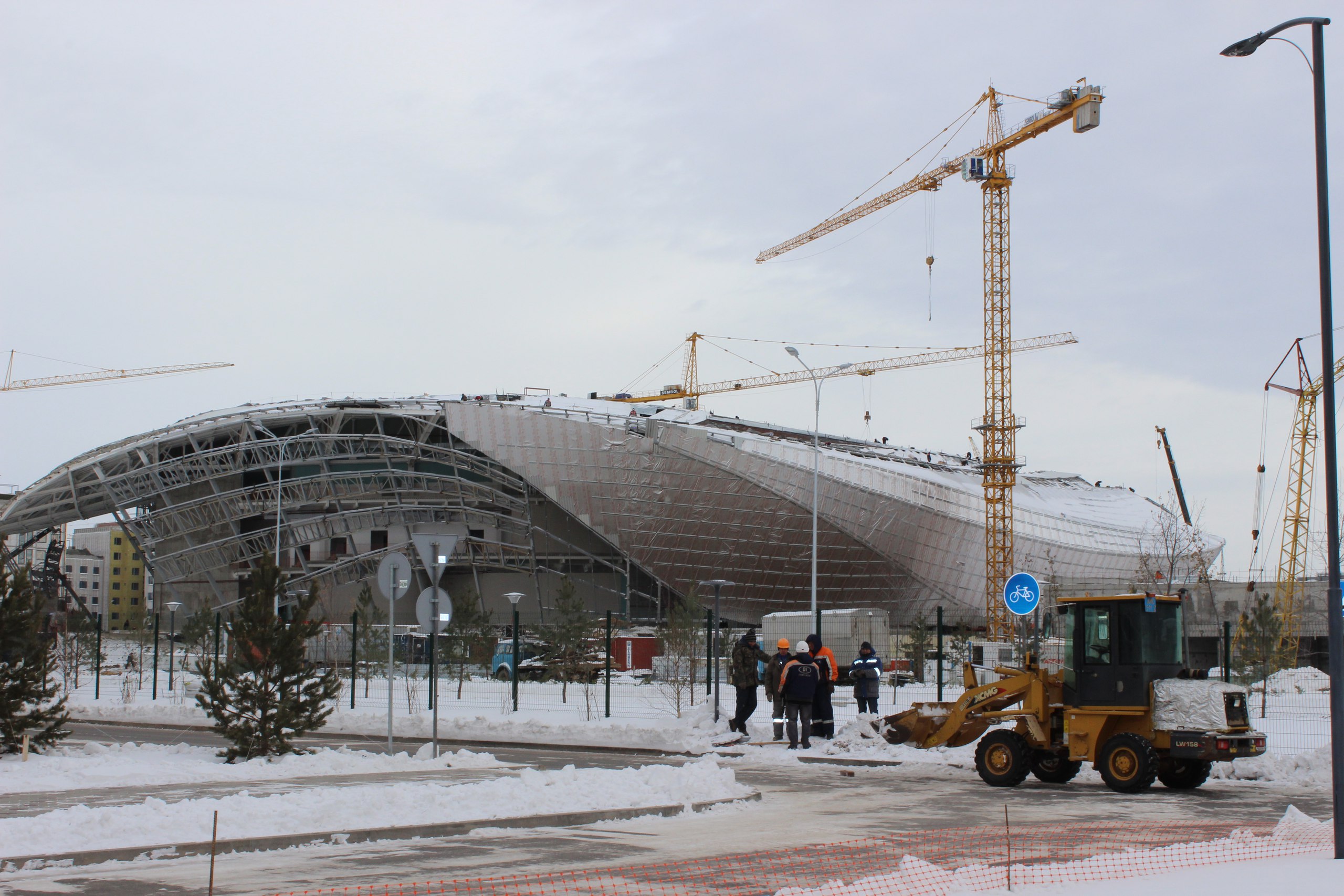 Во время экскурсии по объектам выставки столбик термометра упал за минус 25 градусов. За счет ветра казалось еще холоднее. Но строительство шло полным ходом. Сфера, международные павильоны, конгресс-центр, пресс-центр, жилой массив, гостиницы, торгово-развлекательные центры. В общем, больше трех десятков объектов на площади 174 гектара.