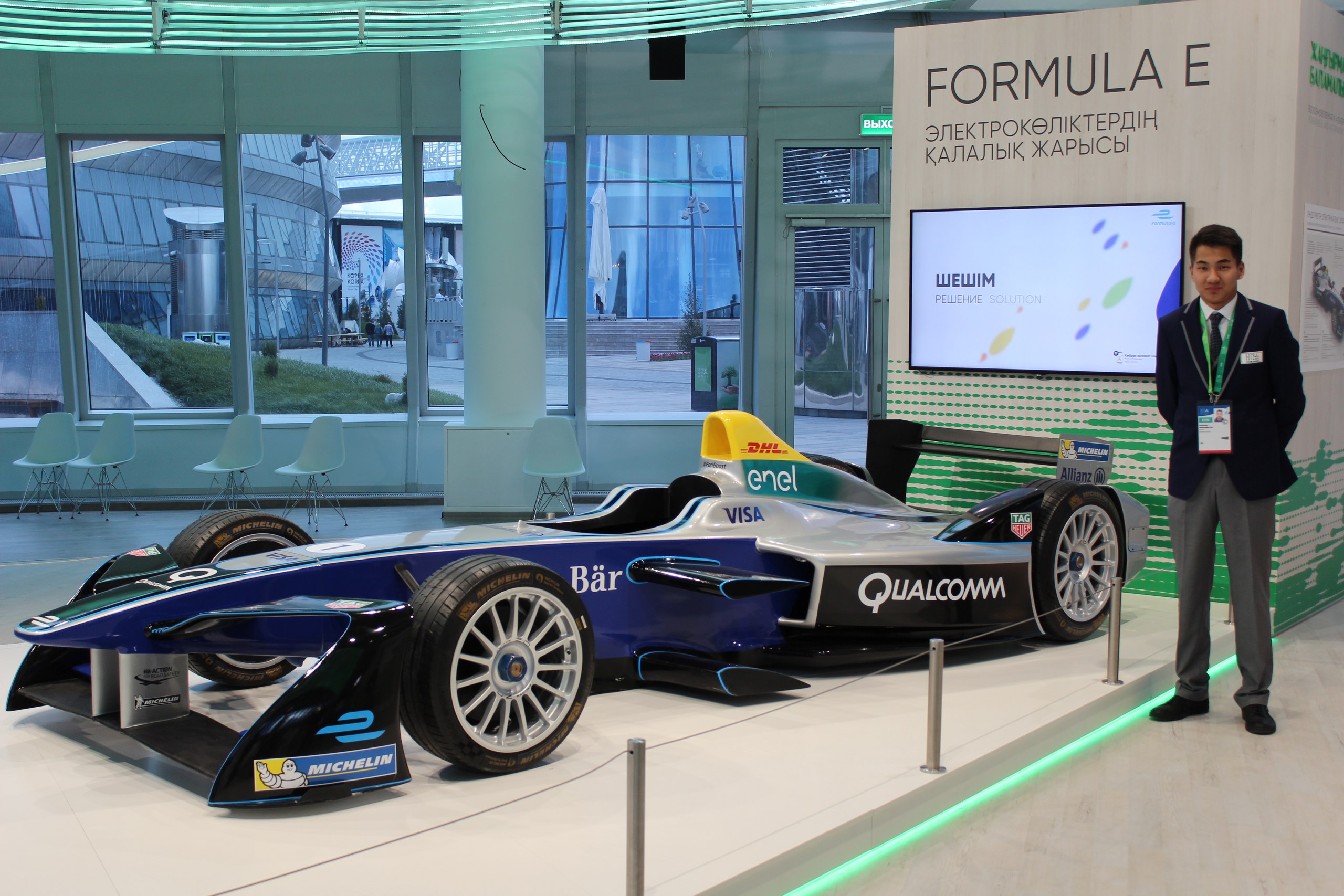 – Потому что у этого болида электродвигатель. Он участвует в экологической гонке «Формула-Е». Топливо для генератора абсолютно безвредно для здоровья, так как создано на основе глицерина и морских водорослей, – гид в «Зоне лучших практик» у каждого проекта.