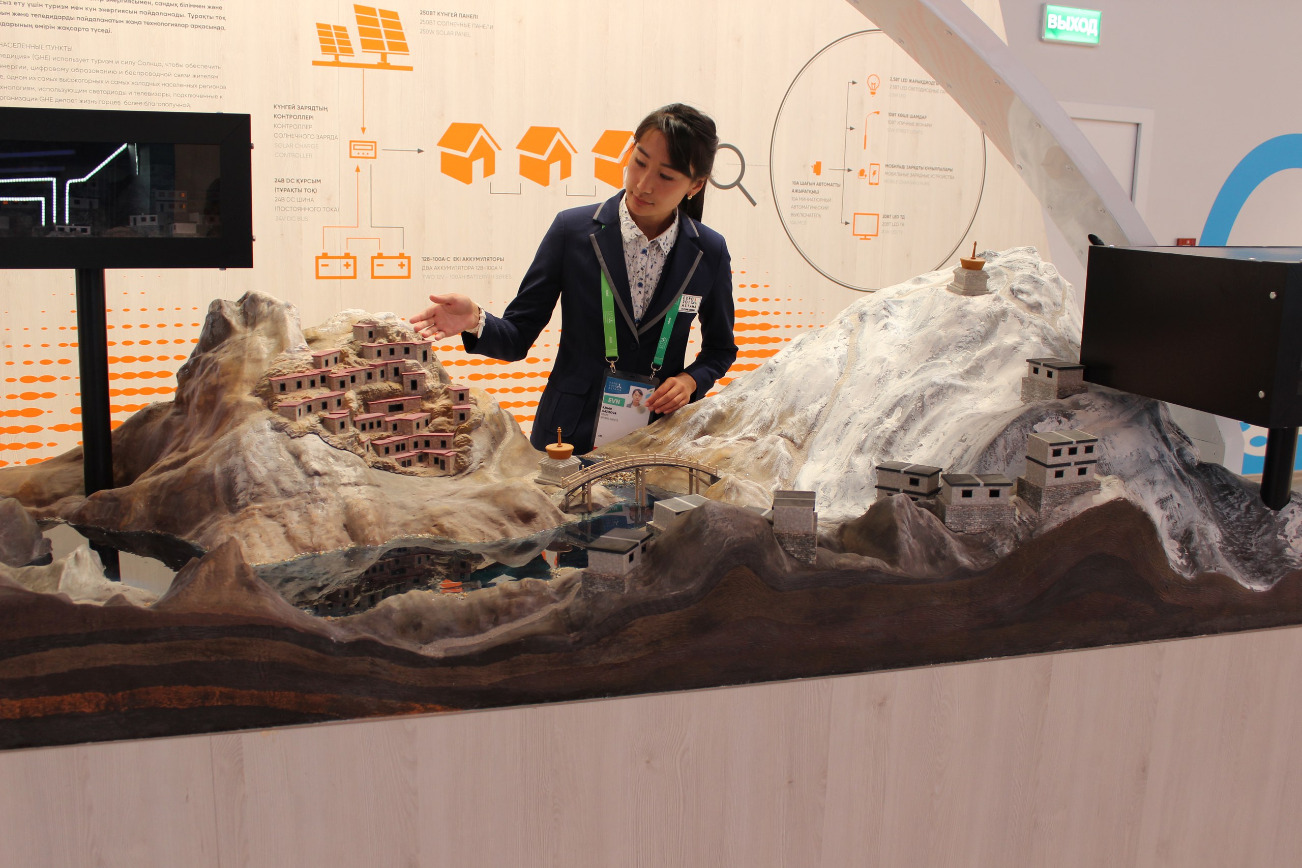 – Это макет высокогорного поселения. Более трех тысяч метров над уровнем моря. Учитывая географию, поселение лишено электричества. Таких деревень много. В Гималаях в них проживает около миллиона человек. Отсюда название проекта – «Глобальная гималайская экспедиция». Его задача – обеспечить электросеть для высокогорья за счет энергии солнца. Есть еще один проект для отдаленных, бедных районов мира. Это система подачи кислорода на солнечной энергии для спасения больных пневмонией.
