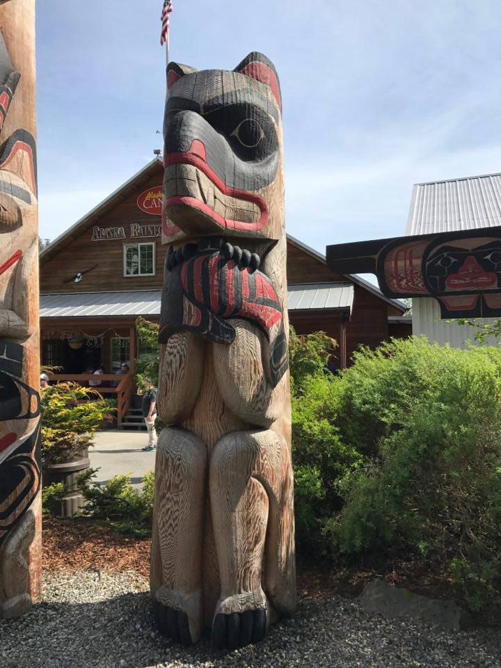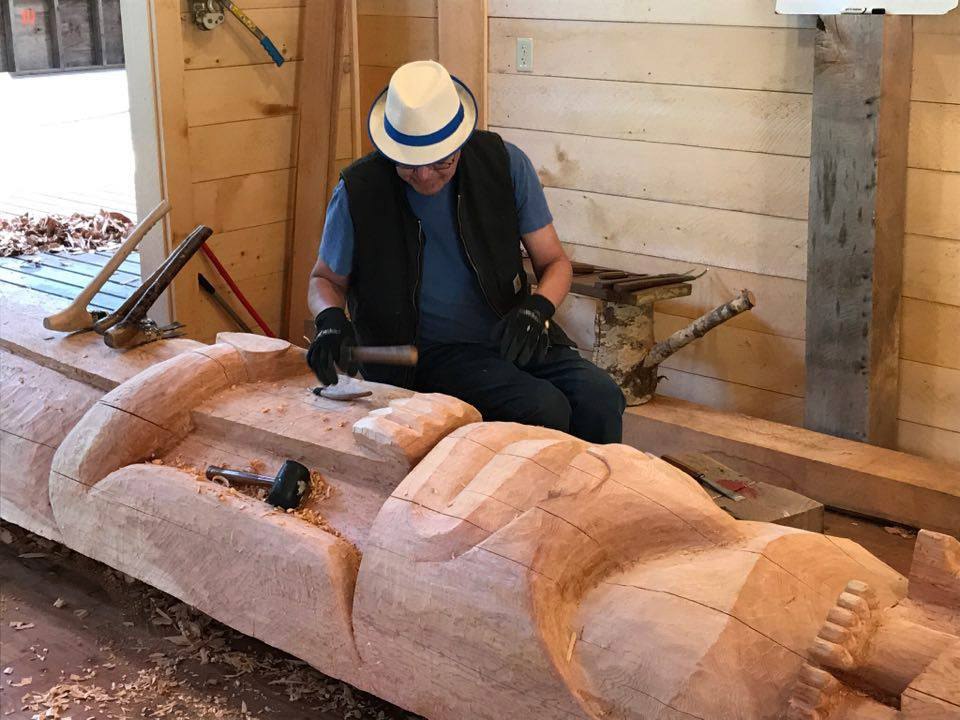Здесь много коренных жителей, им тут спокойнее. Разные племена. Мы видели инуитов. Они не слишком любят общаться и фотографироваться. Удалось запечатлеть мужчину-инуита, который зарабатывает на жизнь резьбой по дереву, делает деревянные тотемные фигуры – приманку для туристов.