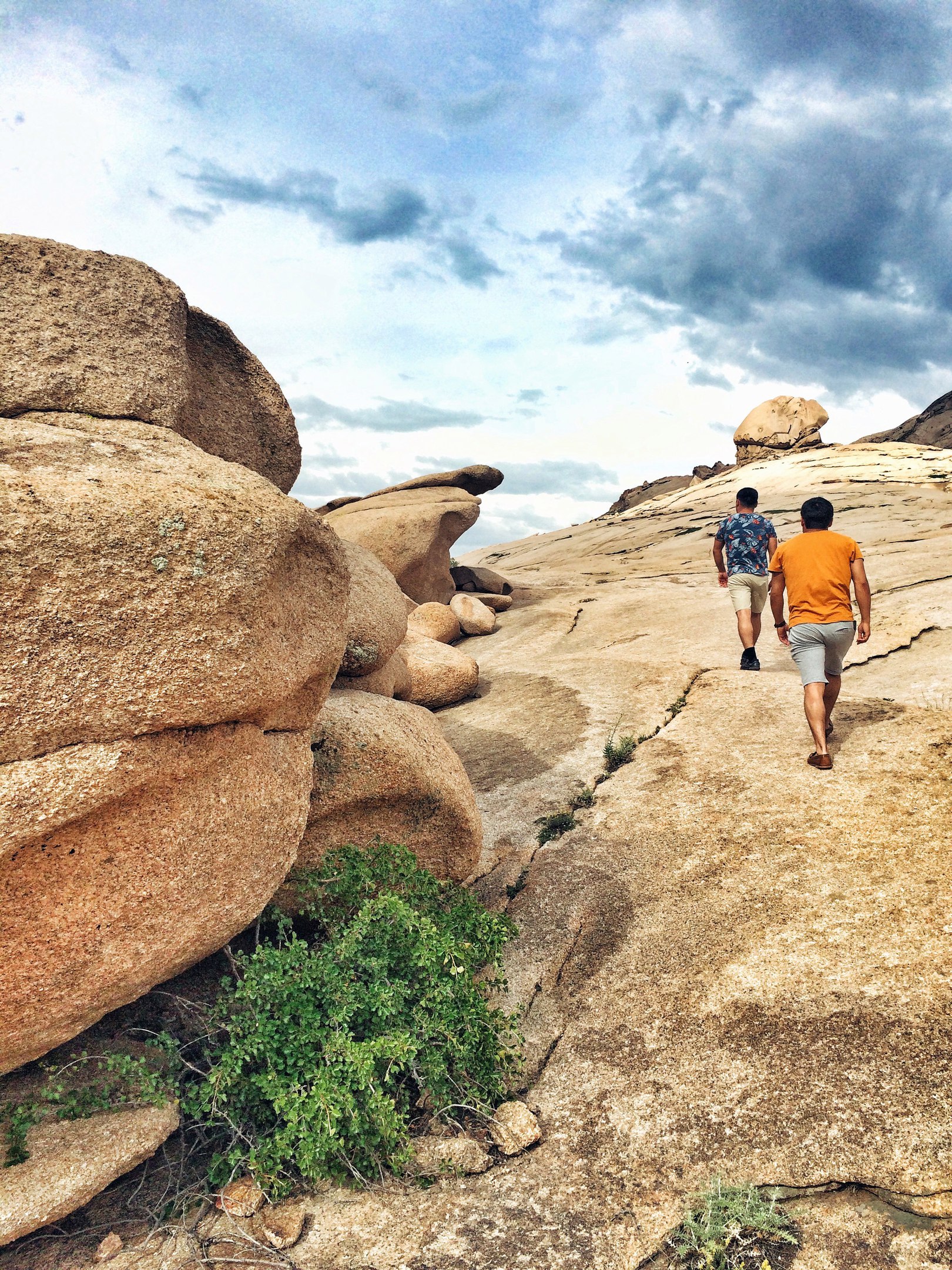 Асель и ее друзья остановились в поселке Чубар-Тюбек. Можно было расположиться и в самом городе Балхаш, однако в поселке более живописный вид и открытый горизонт. По дороге в это место костанайские путешественники советуют заглянуть в урочище Бектау-ата. Уникальное и очень красивое место.