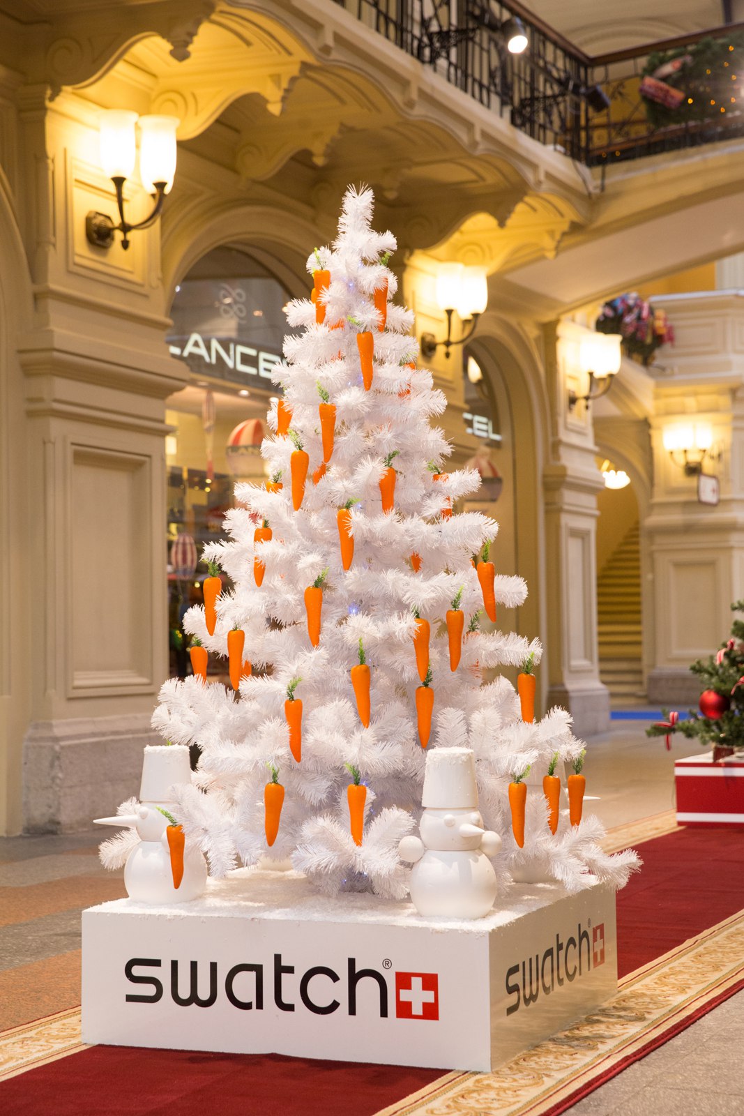 Некоторые дизайнеры особо «мудрили» с макушками деревьев. Кто-то в угоду кофейному бренду соорудил вместо красной звезды эдакий взрыв из капсул для кофемашин. Кто-то свил гнездо и уже подложил туда яйца. Причем сразу золотые. Кто-то на макушку прилепил большой разноцветный леденец.