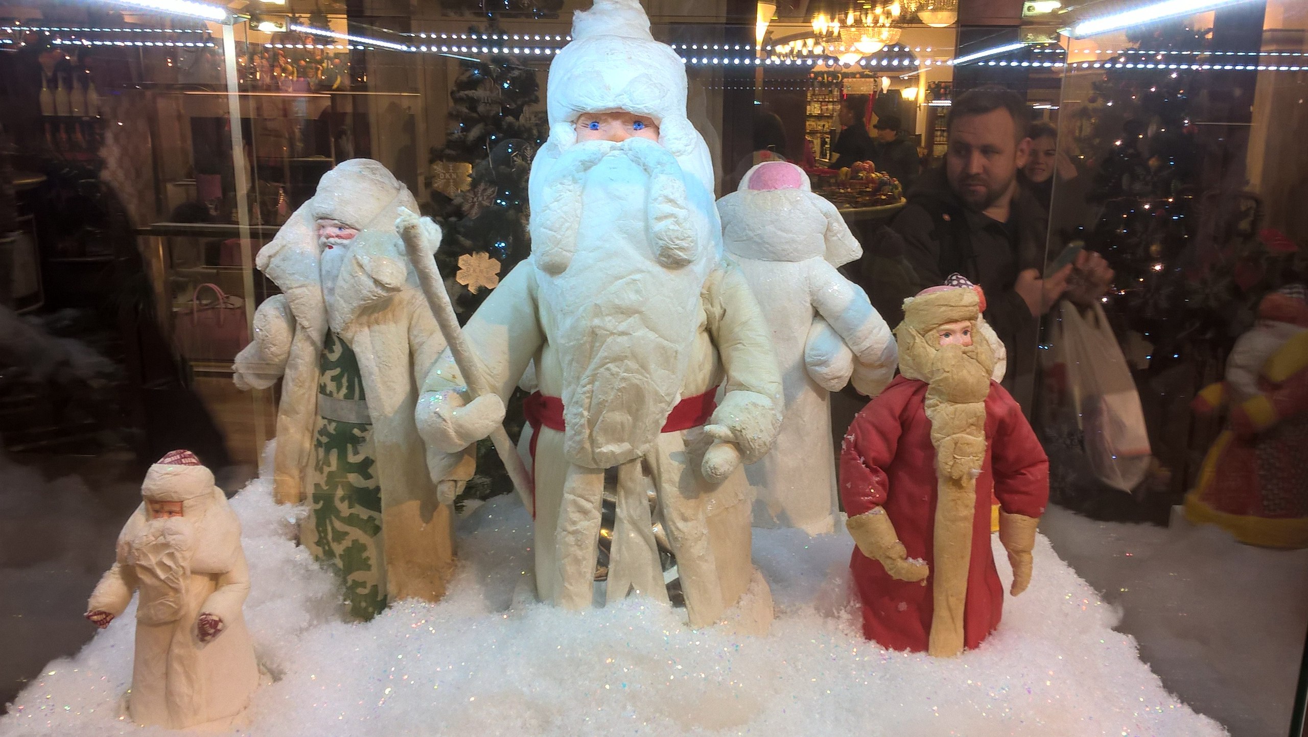 Здесь же, возле елок в ГУМе, свою выставку новогодних игрушек открыл и Александр Олешко. Известный шоумен, актер и телеведущий собрал внушительную коллекцию раритетных новогодних игрушек, открыток, сувениров, карнавальных масок и плакатов 1940-1970 годов. «Собралась она как-то сама собой, – рассказал на открытии выставки Александр. – Бывая на гастролях в разных городах, просто не мог пропустить ни одного ватного советского Деда Мороза из моего счастливого советского детства».