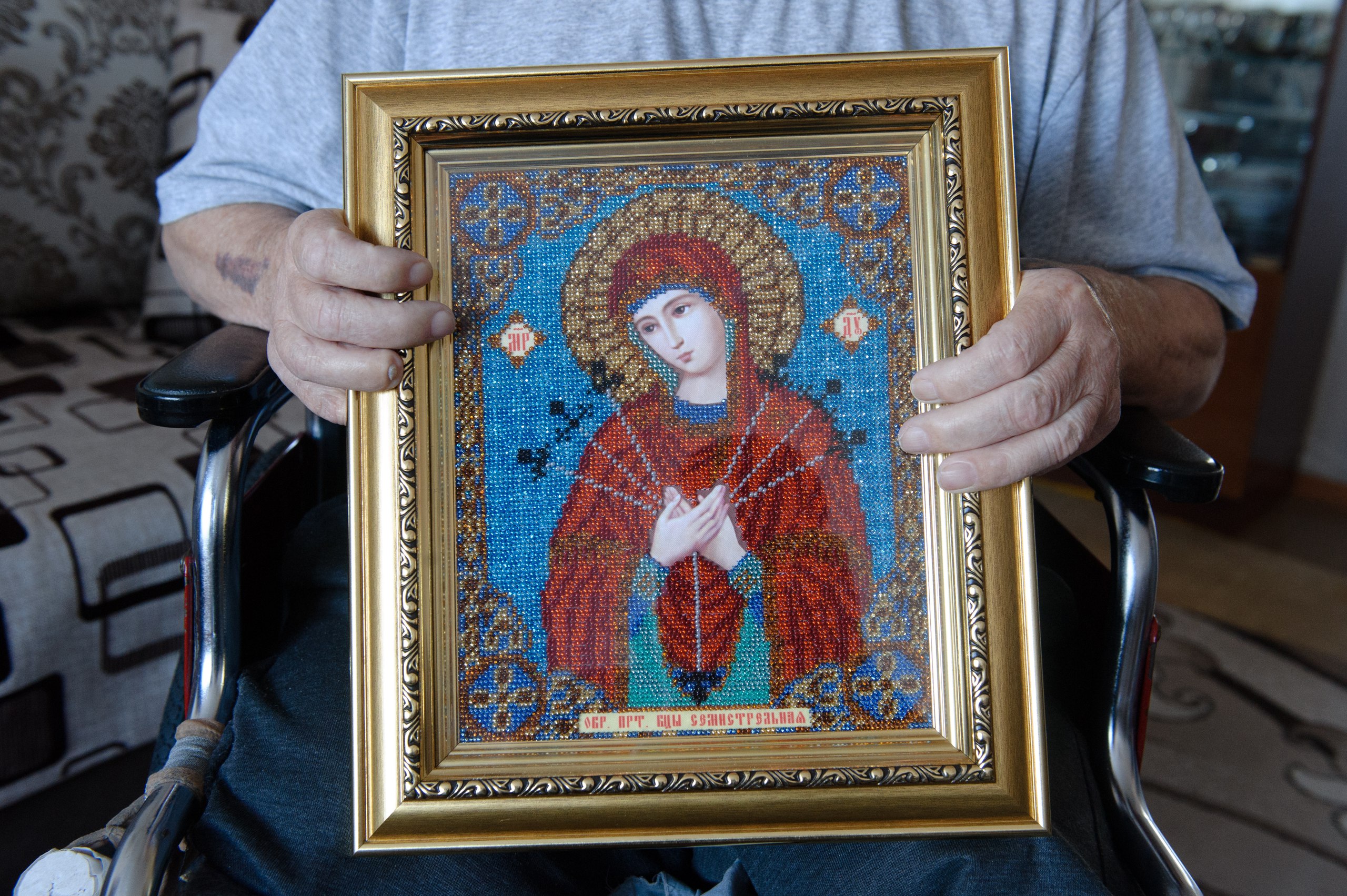 Стало грустно. Квартира маленькая, но светлая. На стенах картины и иконы. Их бисером вышивает дочь Наталья. Ее внимательная рука чувствуется во всем.