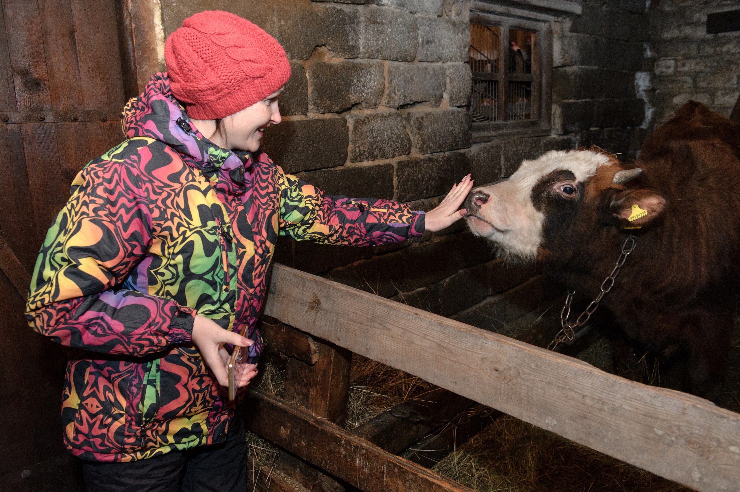 Семь утра. На улице темно. Валентина уже на ногах. Оделась и бойко пошагала в сторону коровника. Говорит, это ее любимое место. Мы семеним следом. Пять голов крупнорогатого скота хозяйку встречают дружным «му-у-у». Первым, как истинный и единственный мужчина в хлеву, внимание на нас, чужаков, обращает бычок Красавчик. В ушах у него красуются две желтые сережки – бирки. Его недоверие довольно быстро сменилось на желание облизнуть визитеров. Эх, мужики…