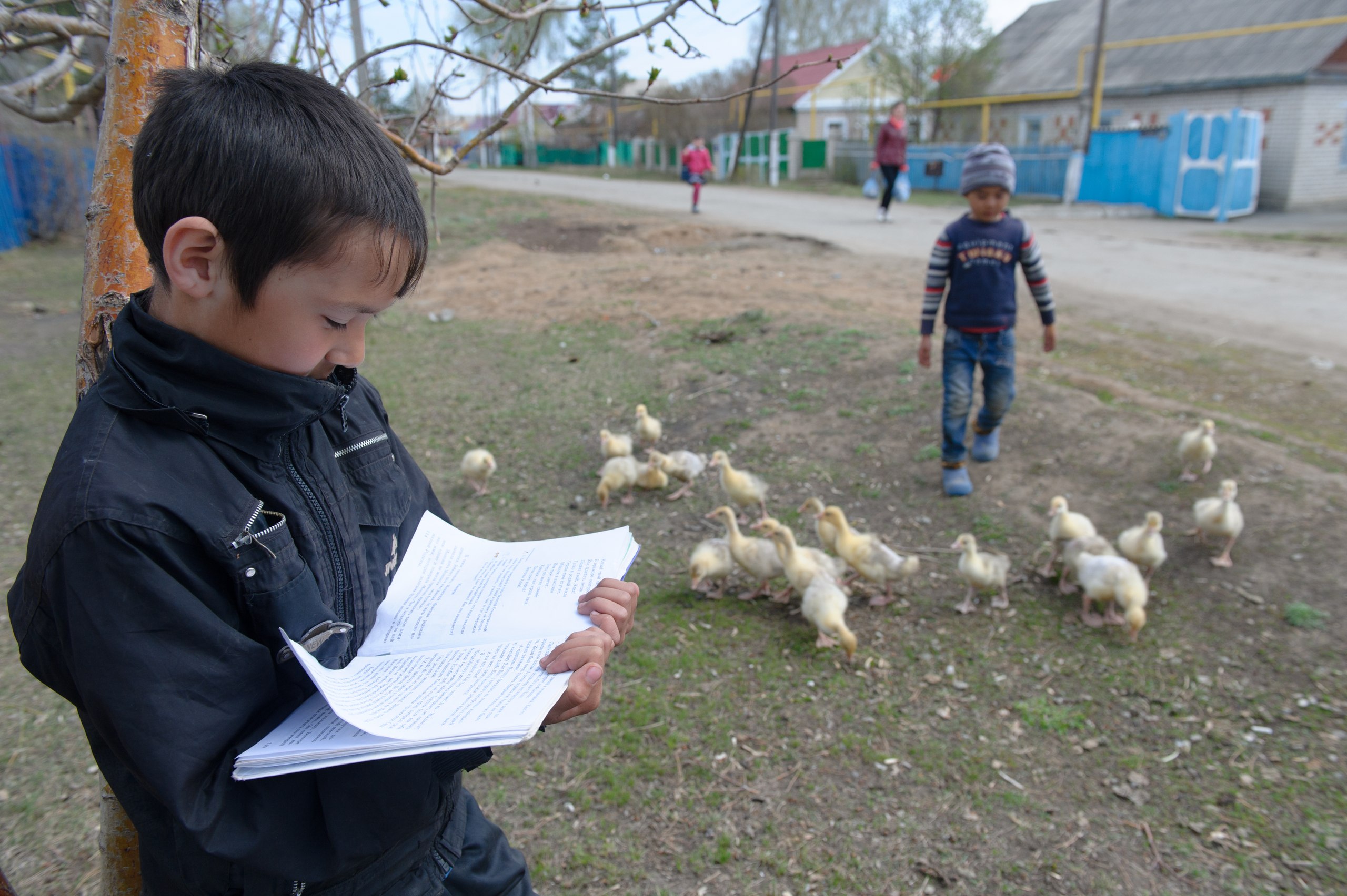 Рамазана и Армана мы застали, когда те пасли маленьких гусят. Да не просто пасли, а совмещали это с подготовкой школьного домашнего задания. В руках пастушков была книга по чтению. Рамазан говорит: надо все успеть – и маме помочь, и уроки выучить. С плохими отметками Большим Человеком не стать. Нужно развиваться…