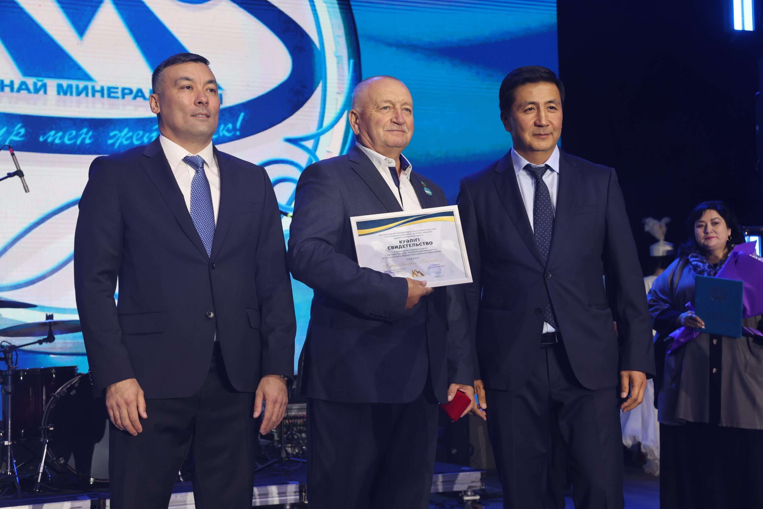 На сцене в это время сменялись артисты и выступающие. Они отмечали, что 60 лет – это возраст мудрости, когда ты уже не просто предприятие, а часть ландшафта, истории и судеб. И почти каждый подчеркивал, что АО «Костанайские минералы» – это не только карьер глубиной в 310 метров и шифер на крышах мира. Это, прежде всего, люди, которые добывают «горный лен» в степи.