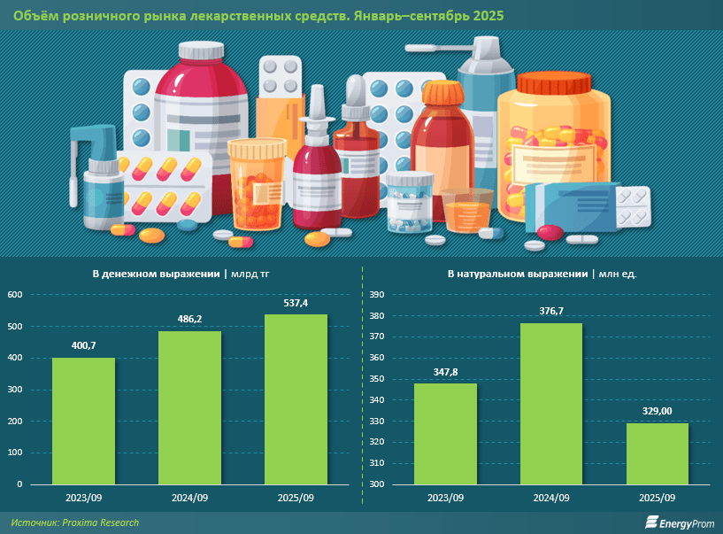 Исследования Бюро нацстатистики подтверждают: расходы населения на лекарства выросли. В июле-сентябре 2025 года – на 8,4%: до 4 тысяч тенге на человека за квартал. Предыдущие два года показатель варьировался в пределах 3,3-3,7 тысяч тенге. И цена на медпрепараты, также по данным Бюро нацстатистики, является одной из причин, почему 22% казахстанцев в 2025 году не воспользовались некоторыми видами медуслуг.