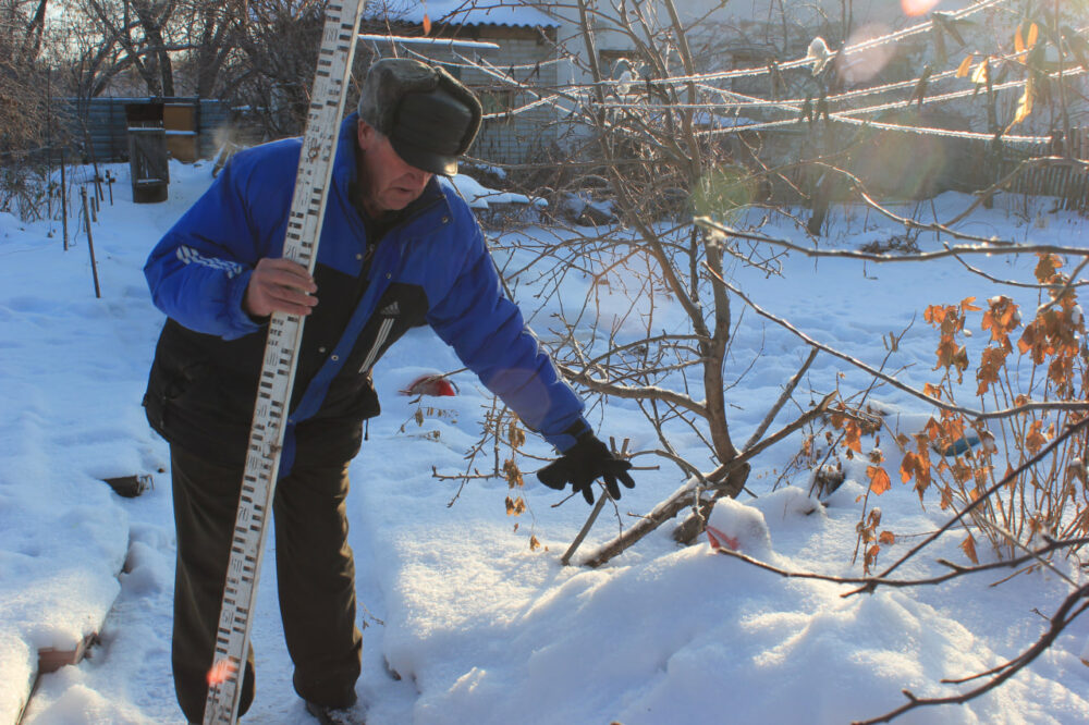 В садах, где лежит очень глубокий снег, во время февральских оттепелей он может начать подтаивать и вызовет подопревание корневой шейки плодовых деревьев. Поэтому советуем встать на лыжи и все снеговые сугробы в саду проткнуть до земли. А плотную снеговую корку вокруг молодых деревьев надо осторожно разрыхлить граблями и отбросить излишки снега.