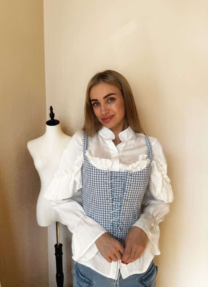 – Этот корсет можно надеть под джинсы, под любые брюки, или на легкое платье или оверсайз-футболку, – рассказывает Алена. – К тому же в хлопковом корсете удобно, комфортно, можно проходить целый день. Нигде не сдавливает и при этом утягивает фигуру, поднимает грудь. Даже небольшую грудь корсет в силе подчеркнуть.