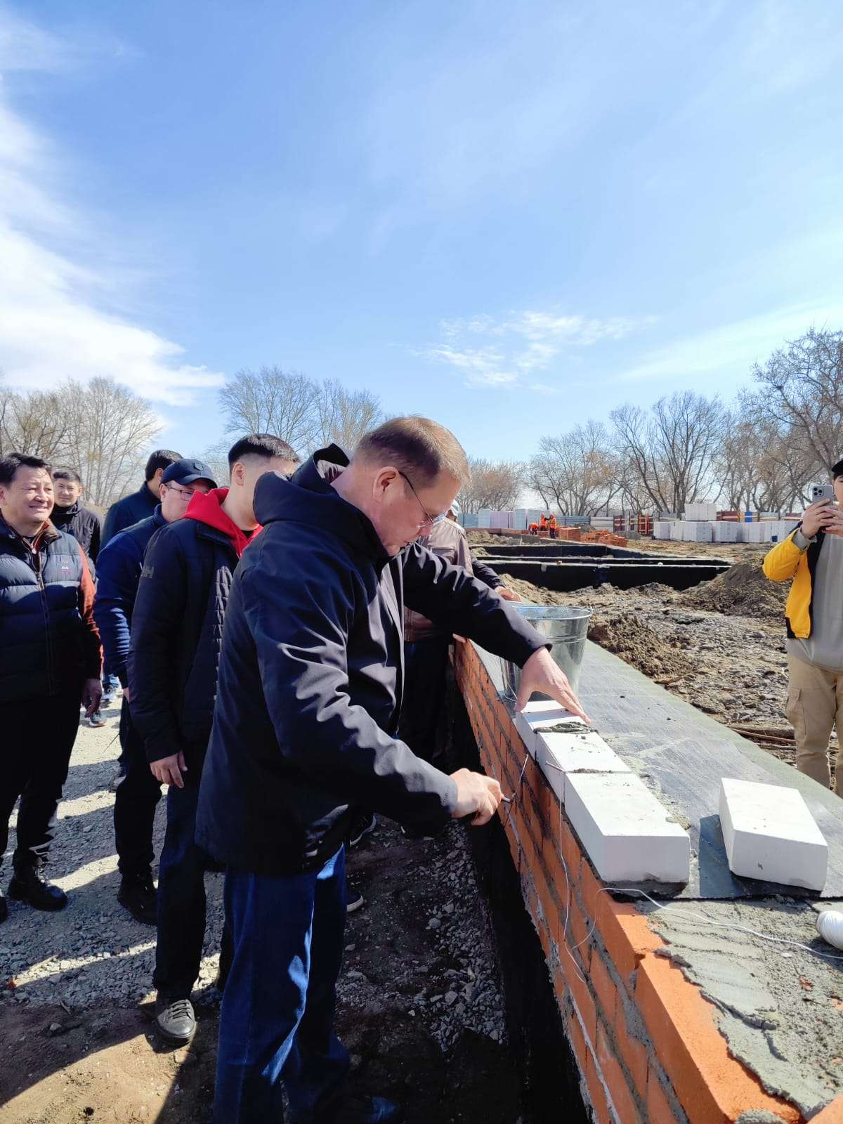 Аким Костанайской области Кумар Аксакалов после ознакомления с проектом принял участие в закладке символического кирпича в будущем корпусе стадиона.