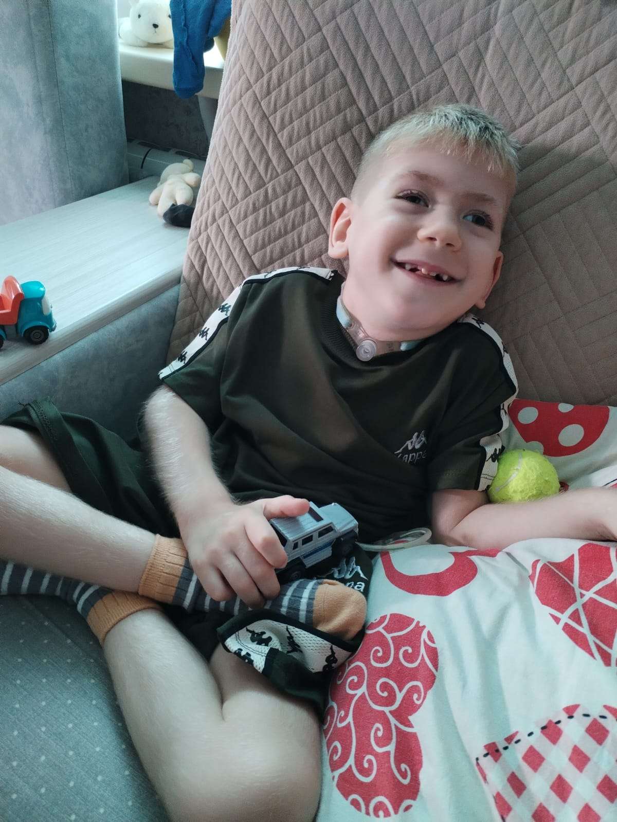 Напомним, что у Арсения болезнь Лея – генетическое заболевание, поражающее центральную нервную систему. Арсений у нас несколько раз был в проекте, мы собирали деньги на покупку портативного аппарата ИВЛ и специальное питание. Благодаря вам, земляки, Арсюша дышит, живет. Пока что препарата, который бы полностью излечил заболевание, еще нет. Но есть возможность облегчить состояние и дать Арсению шанс развиваться, легче дышать.