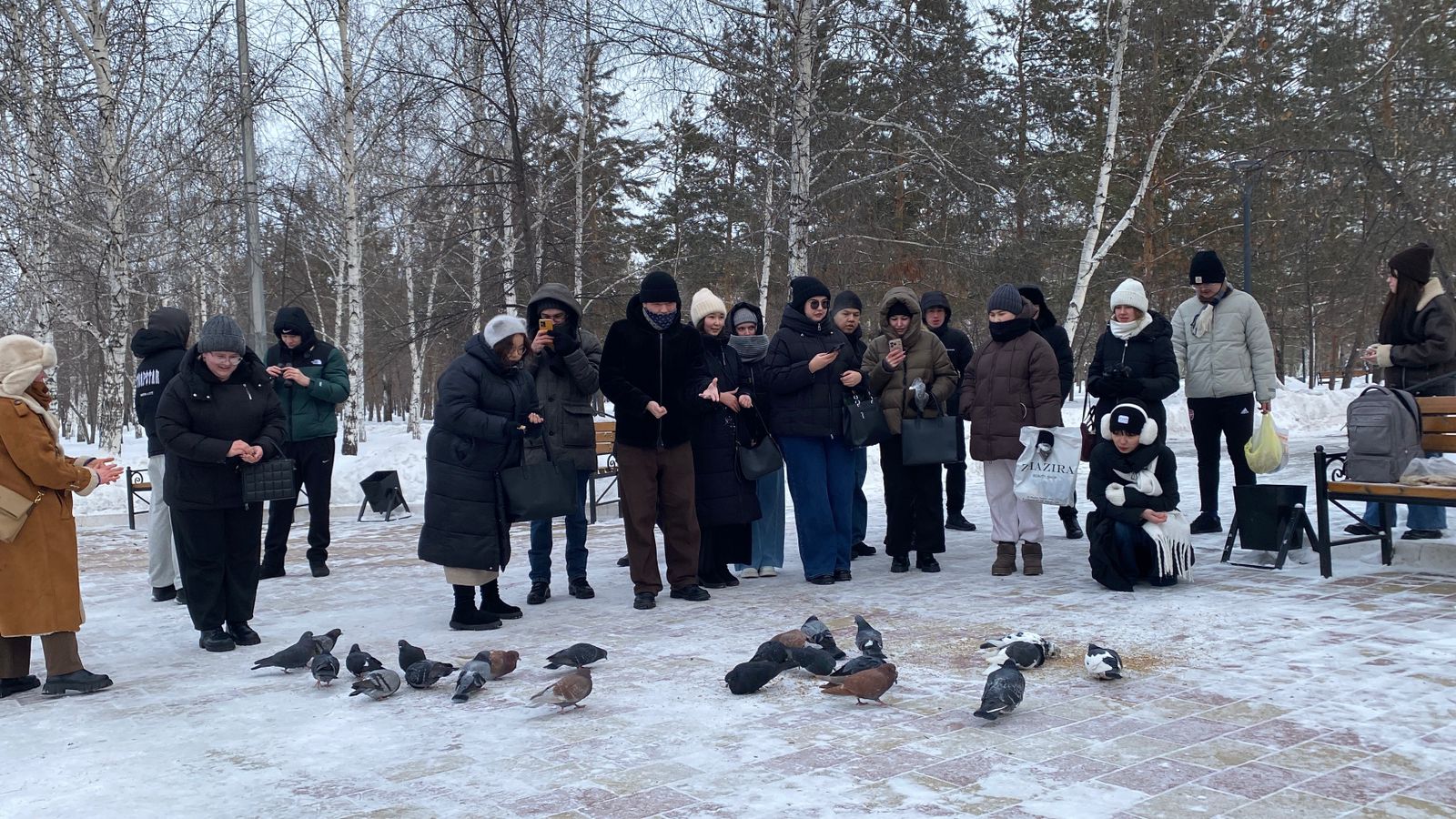 Морозное январское утро не стало преградой для добрых дел. В Парке Победы ребята очистили кормушки от снега и пополнили их зерном. Как признаются сами студенты, «птичьих столовых» здесь немало, и горожане не забывают о пернатых, регулярно приносят им угощения. В зимние холода каждая горсть корма может спасти маленькую жизнь.
