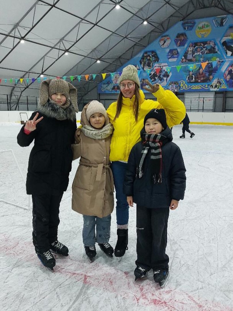 Совместными усилиями каток украсили к Новому году. Школа им. Камшат Доненбаевой доставила елку, школа №1 – новогодние игрушки, а депутат районного маслихата Олжас Агайдаров подарил важный тренажер – опору для обучения катанию на коньках.