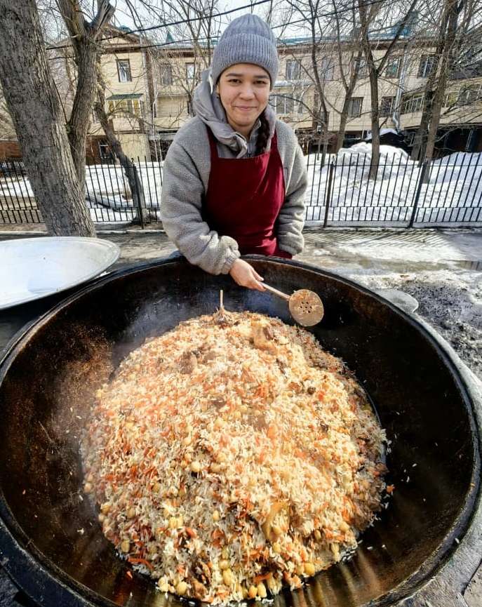 Жители приготовили в этот день наурыз коже, плов, чай из самоваров, баурсаки и т.д. Полный плов с мясом, морковью, нутом, но главное в нем лёгкий запах дыма от живого огня. Чай — крепкий, жирный с молоком имел тот же тёплый дымный оттенок. Густой коже – обычно его берут выборочно, но в этот раз выстроилась очередь.